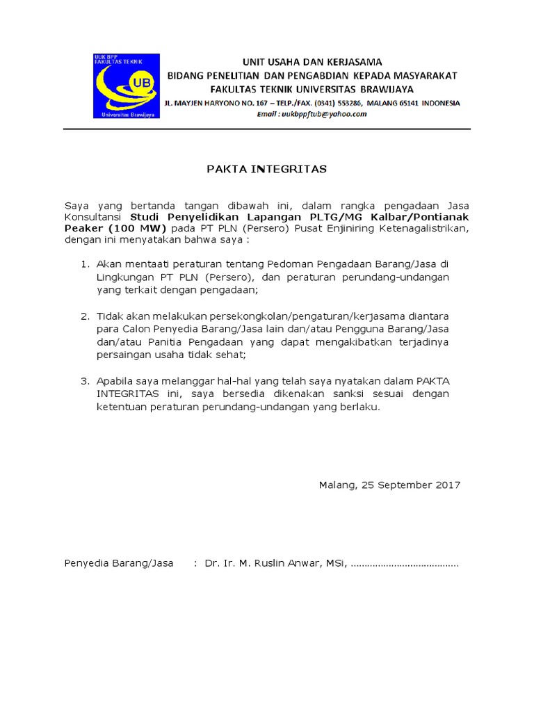 Surat Pernyataan Minat, Pakta Integritas dan Isian