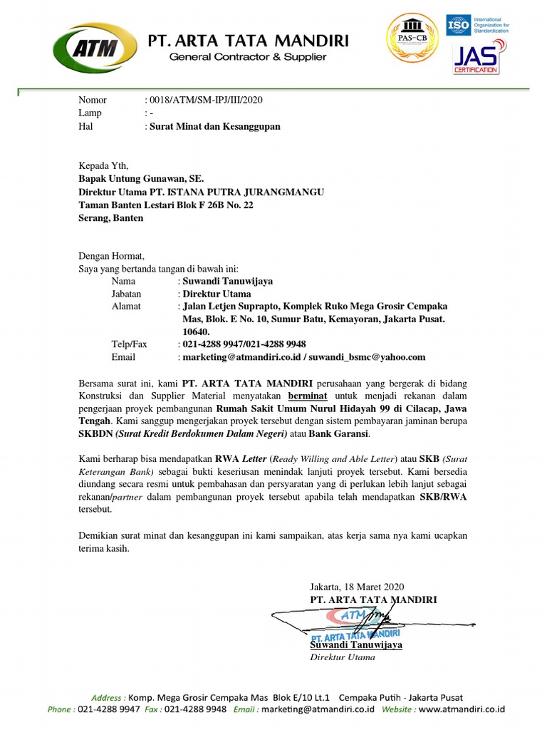 0018 Surat Minat dan Kesanggupan PT. Istana Putra