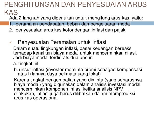 Analisis keputusan investasi modal. Jika kita gunakan contoh usaha divisi taksi di atas maka kita memperkirakan bahwa investasi yang dikeluarkan sebesar rp 1500000000 pada tahun 0. Salah satu tugas manajer adalah untuk menentukan apakah investasi modal akan dapat mengembalikan investasi awal dan memberikan return yang memadai. Modal dan pengaruhnya terhadap keputusan berinvestasi pada pasar modal” sangat relevan untuk diteliti.