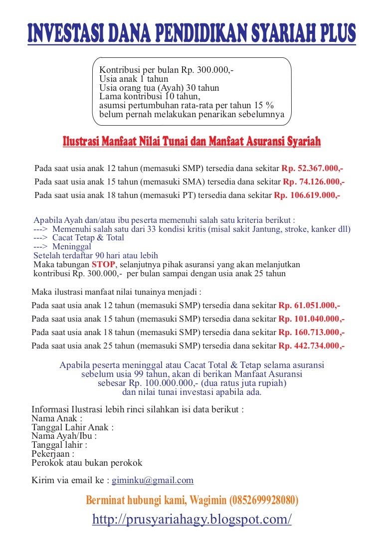 Investasi pendidikan syariah minimal 300 ribu per bulan
