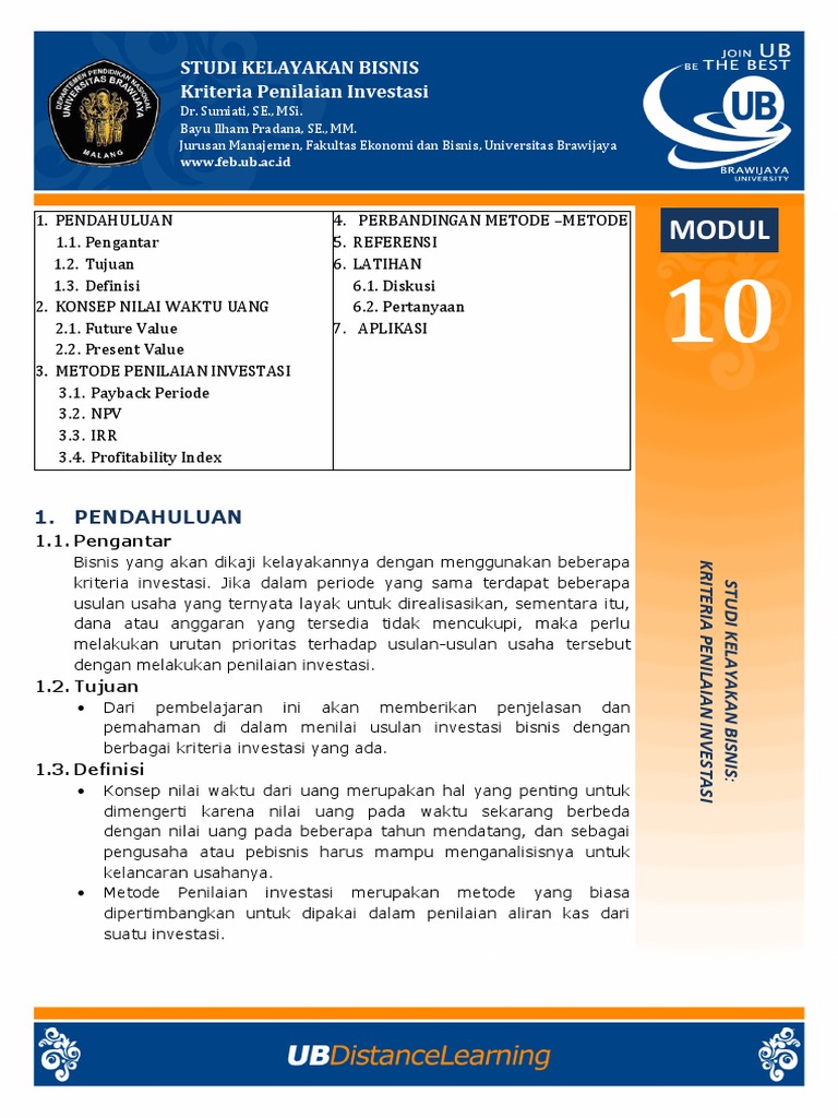 Kriteria penilaian investasi konsep nilai waktu uang jika anda dihadapkan pada 2 pilihan di mana pilihan pertama adalah diberi uang pada saat ini (misalkan tanggal 1 januari 2001) diberi uang sebesar rp1.000.000,00, dan yang kedua anda akan diberi uang dengan jumlah yang Net present value (npv) merupakan manfaat bersih tambahan (nilai kini bersih) yang diterima bisnis selama umur proyek pada tingkat. Tentu saja tidak setiap proyek akan diteliti dengan tingkat intensitas