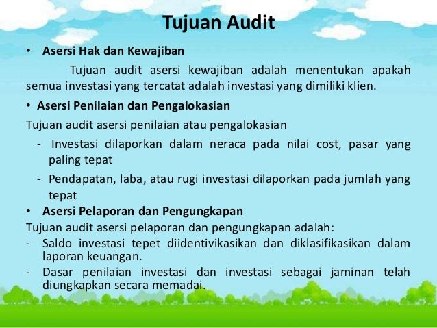 Perbedaannya adalah jika dalam siklus investasi perusahaan membli saham atau obligasi perusahaan lain, maka dalam siklus pendanaan perusahaan mengeluarkan surat berharga saham atau. Bab 6 pengauditan siklus investasi dan pendanaan siklus investasi tujuan audit materialitas, risiko, dan strategi audit pemahaman struktur pengendalian intern penghimpunan dan pendokumentasian pemahaman penetapan risiko pengendalian pengujian substantif saldo investasi pertimbangan program audit siklus pendanaan materialitas, risiko, dan. Siklus investasi istilah investasi sangat luas karena mecakup akuisisi perusahaan lain, memperluas dan meningkatkan kapasitas pabrik, membeli surat berharga, mendirikan anak perusahaan, dan sejenisnya.