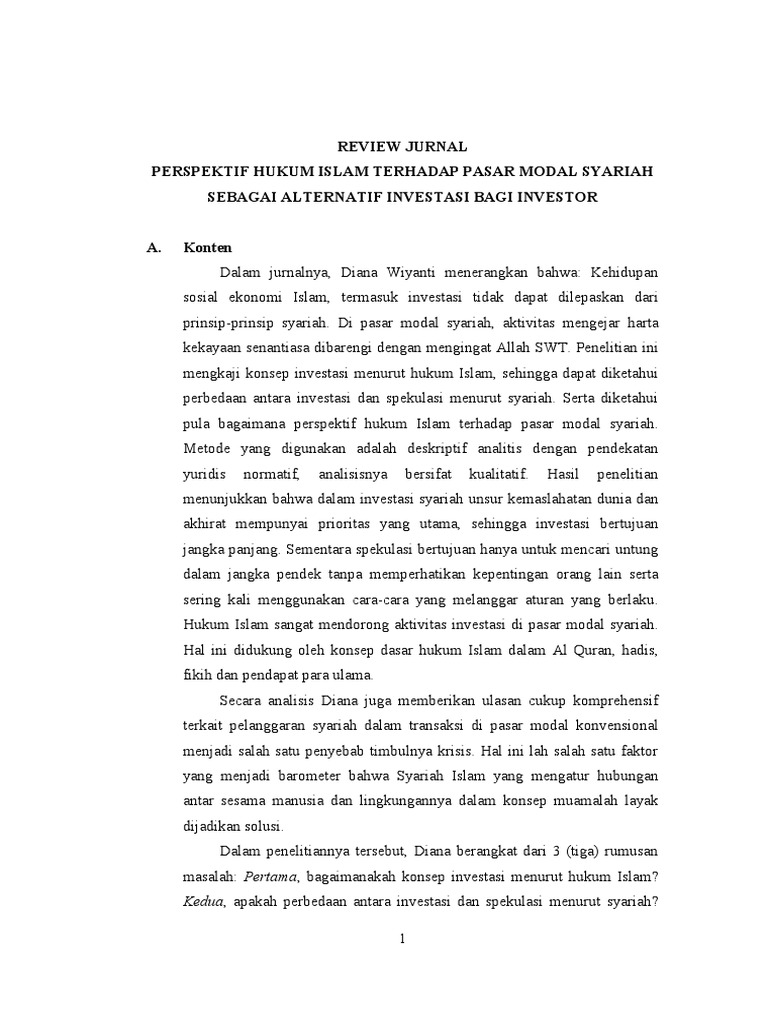 61/pojk.04/2016 tentang penerapan prinsip syariah di pasar modal pada manajer investasi, setiap manajer investasi yang mengelola efek syariah wajib untuk membentuk unit pengelolaan invesatasi syariah (upis) dengan batas waktu 1 (satu) tahun sejak berlaku peraturan dimaksud yaitu, 20 desember 2016. Strategi investasi di pasar modal (kadiman pakpahan) 141 pengelolaan pasar modal di indonesia 1. Review jurnal investasi pasar modal investasi investasi adalah suatu istilah dengan beberapa pengertian yang berhubungan dengan keuangan dan ekonomi.