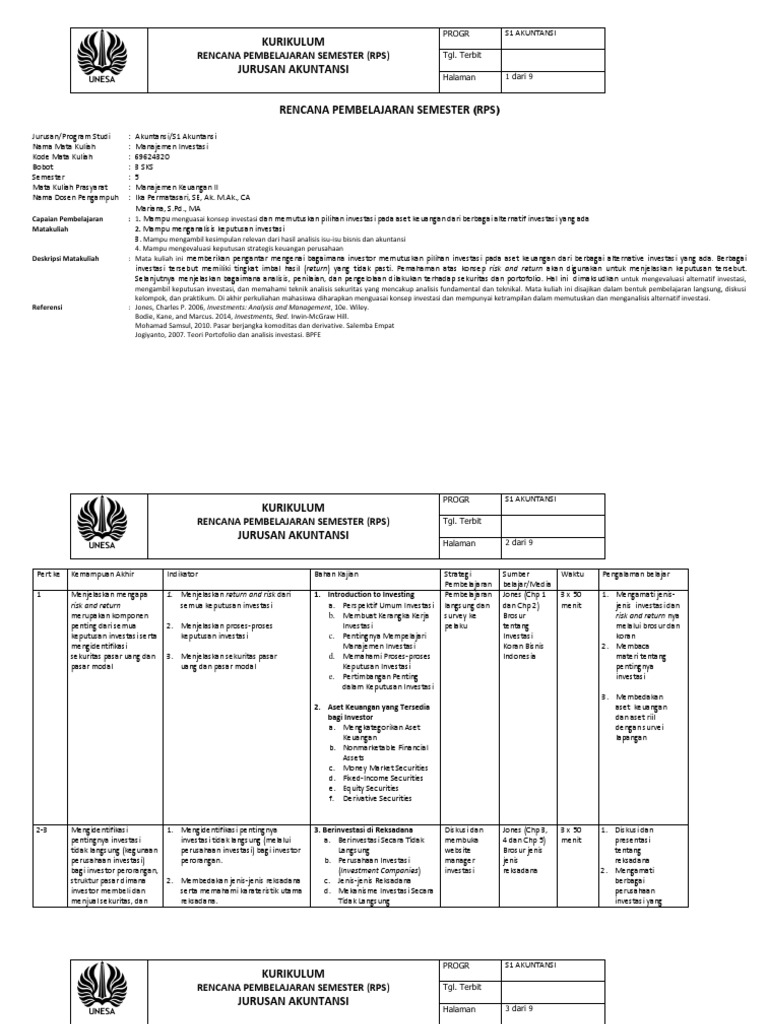 RPS Manajemen Investasi S1 Akuntansi