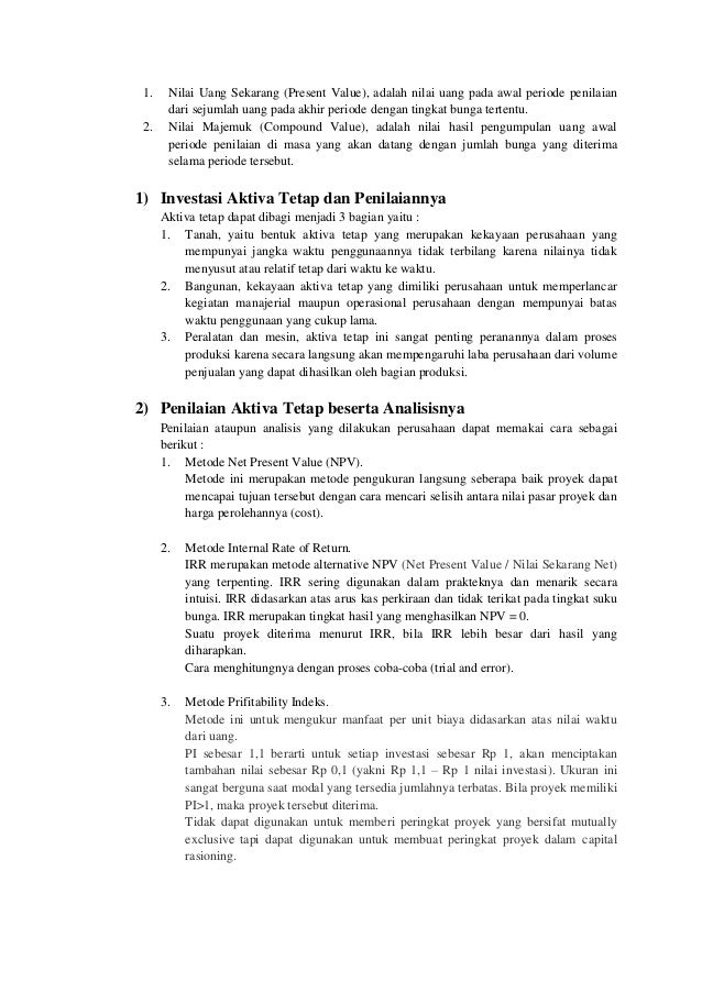 Proceed tiap tahunnya adalah sama, yaitu sebesar rp. Penilaian investasi adalah proses evaluasi dari keinginan untuk membuat permohonan investasi (investment).