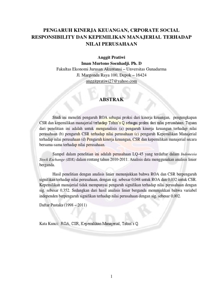 Jurnal Pengaruh Csr Terhadap Kinerja Keuangan Perusahaan