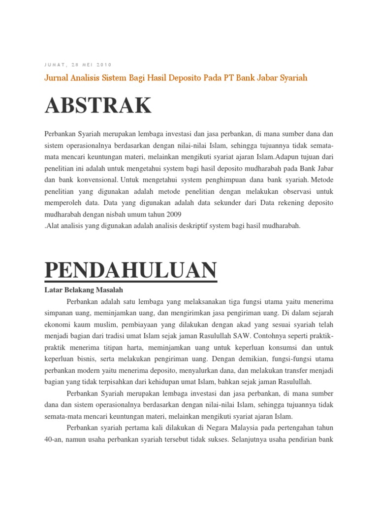 Jurnal Analisis Sistem Bagi Hasil Deposito Pada PT Bank