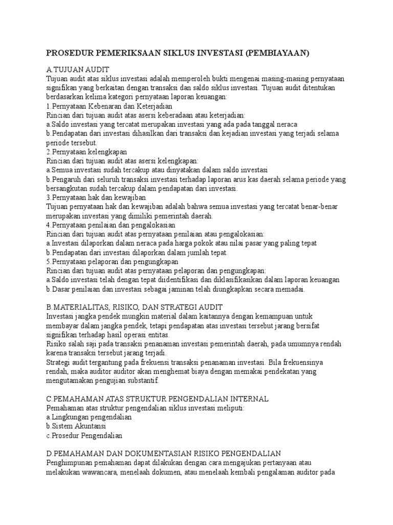 Prosedur Pemeriksaan Siklus Investasi