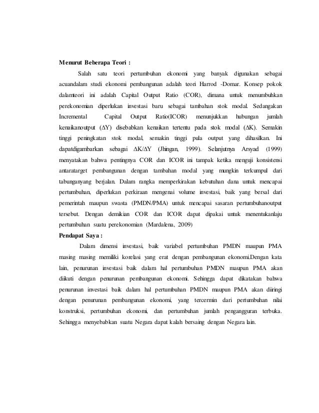 Pertama tentang teori modernisasi, meliputi: Dengan menggunakan persamaan (2.4) kita akan mendapatkan pertumbuhan ekonomi per tahun negara tersebut adalah 2%. Sebuah survey literatur yuswar zainulbasri universtias trisakti, jakarta abstrak kajian dan survey literatur ini merupakan pembahasan teoretis serta hasil kajian empiris tentang pentingnya serta peranan utang luar negeri dalam memacu dan mendorong kemajuan ekonomi suatu negara.