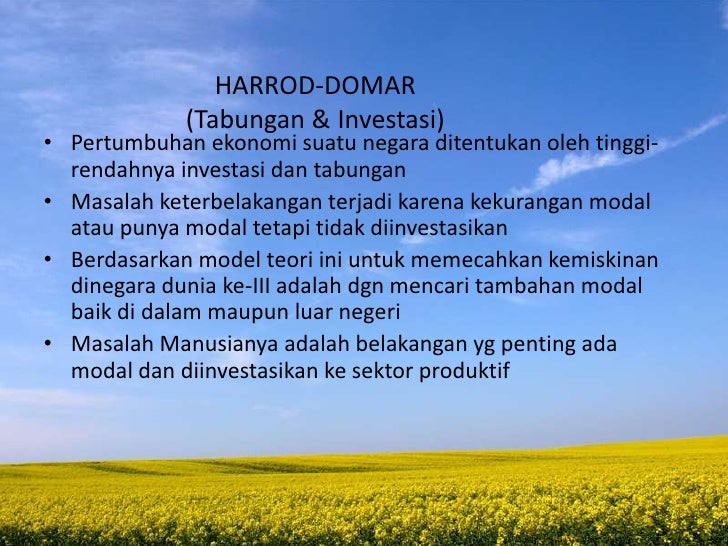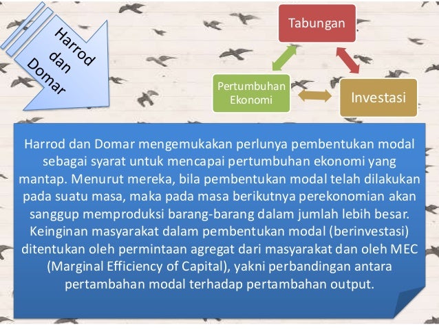 Tabungan dan investasi, (2) max weber: Sedangkan domar menyatakan teorinya pada tahun 1947 dalam jurnal amerika economic review. Salah satu teori pembangunan yang sampai saat ini masih dipakai, meskipun sudah dikembangkan secara lebih canggih, adalah teori dari evsey domar dan roy harrod.