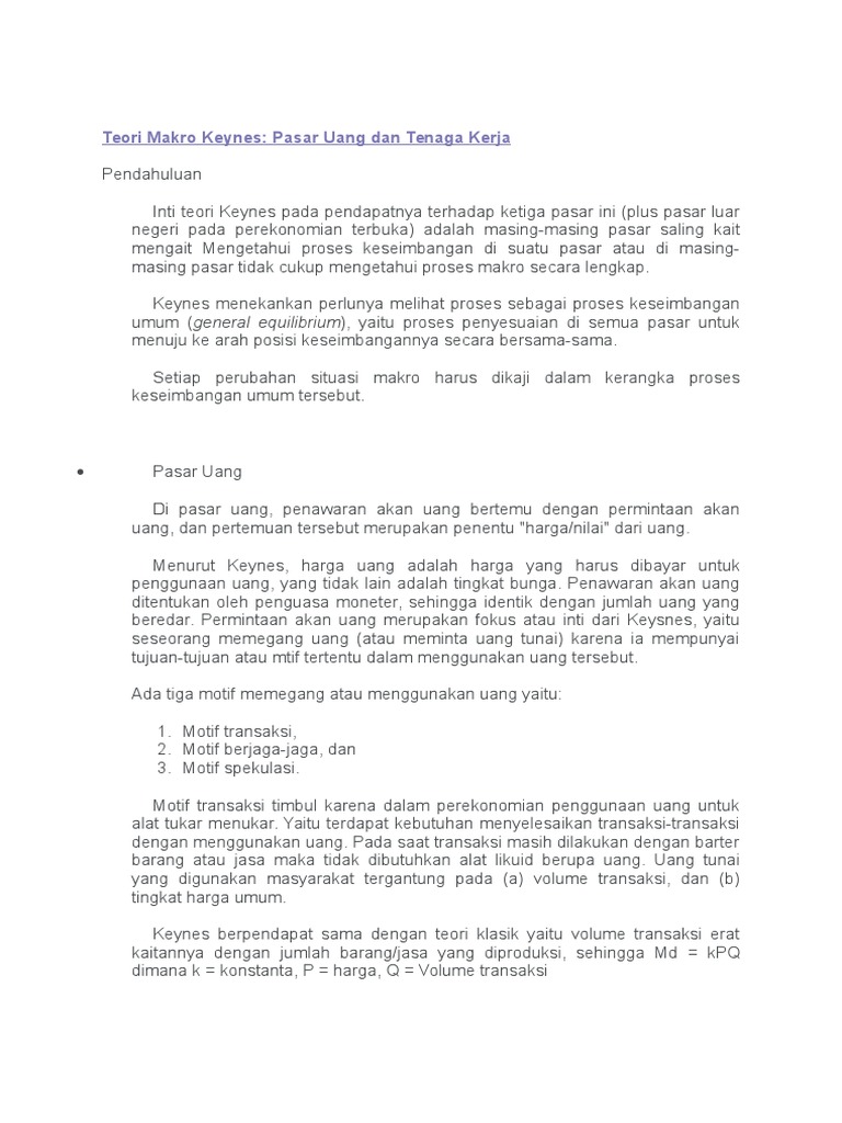 Teori konsumsi dan investasi | teori ekonomi makro makalah konsumsi dan investasi. Tetapi pada saat lain, misalnya dalam keadan ekonomi yang stabil dan dalam jangka panjang, mungkin teori makro klasik lebih cocok untuk diterapkan. Misalnya pada saat terjadi krisis ekonomi yang berkepanjangan yang dimulai pada tahun 1997 teori ekonomi makro keynesian menawarkan beberapa alternatif pemecahan untuk mengoreksi keadaan tersebut.